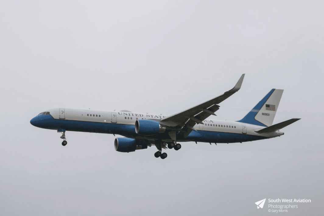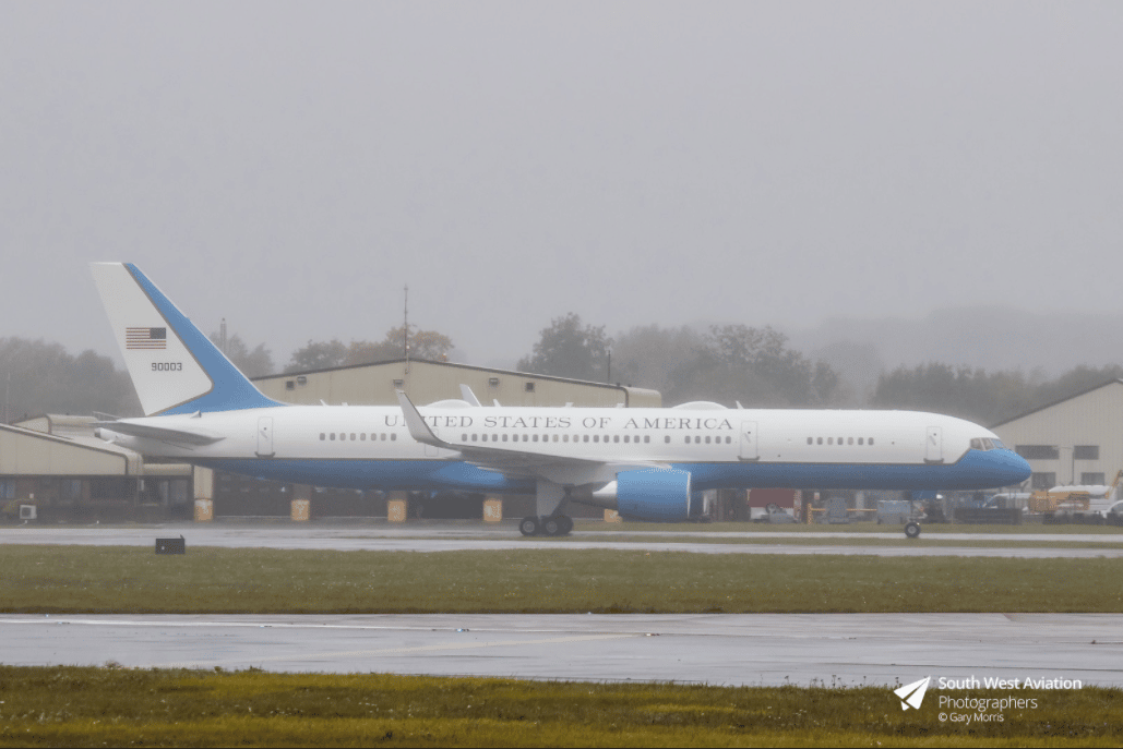 Flying the short hop from Aberdeen Dyce International Airport in Scotland, the C-32A was on the ground for less than three and half hours before departing to London Stansted Airport