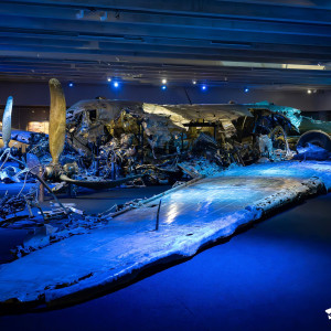 The final display hall can be found in the basement and is titled Secret Documents – The DC-3 that disappeared. In 2005, the Air Force Museum was tasked by the Swedish government with preserving the wreckage of the DC-3, TP 79001, which was shot down by Soviet fighter aircraft over the Baltic Sea in 1952. On 13th June 1952, during the height of the cold war, the DC-3 departed from Bromma airport near Stockholm on an electronic intelligence gathering mission over the Baltic Sea. After being in the air for a few hours, communication with the aircraft was suddenly lost. No trace of the aircraft could be found apart from a few small items and traces of Soviet ammunition. A search for the missing aircraft was launched which resulted in a Consolidated Catalina being attacked by Soviet Mig-15 and forced to land. The Soviet Union denied any involvement in the loss until 1991. The wreckage was finally located in June 2003 and salvaged and the DC-3 was recovered and placed on display in the basement of the new museum hall with a very interesting timeline of the history of the aircraft and its final flight and ultimate loss.