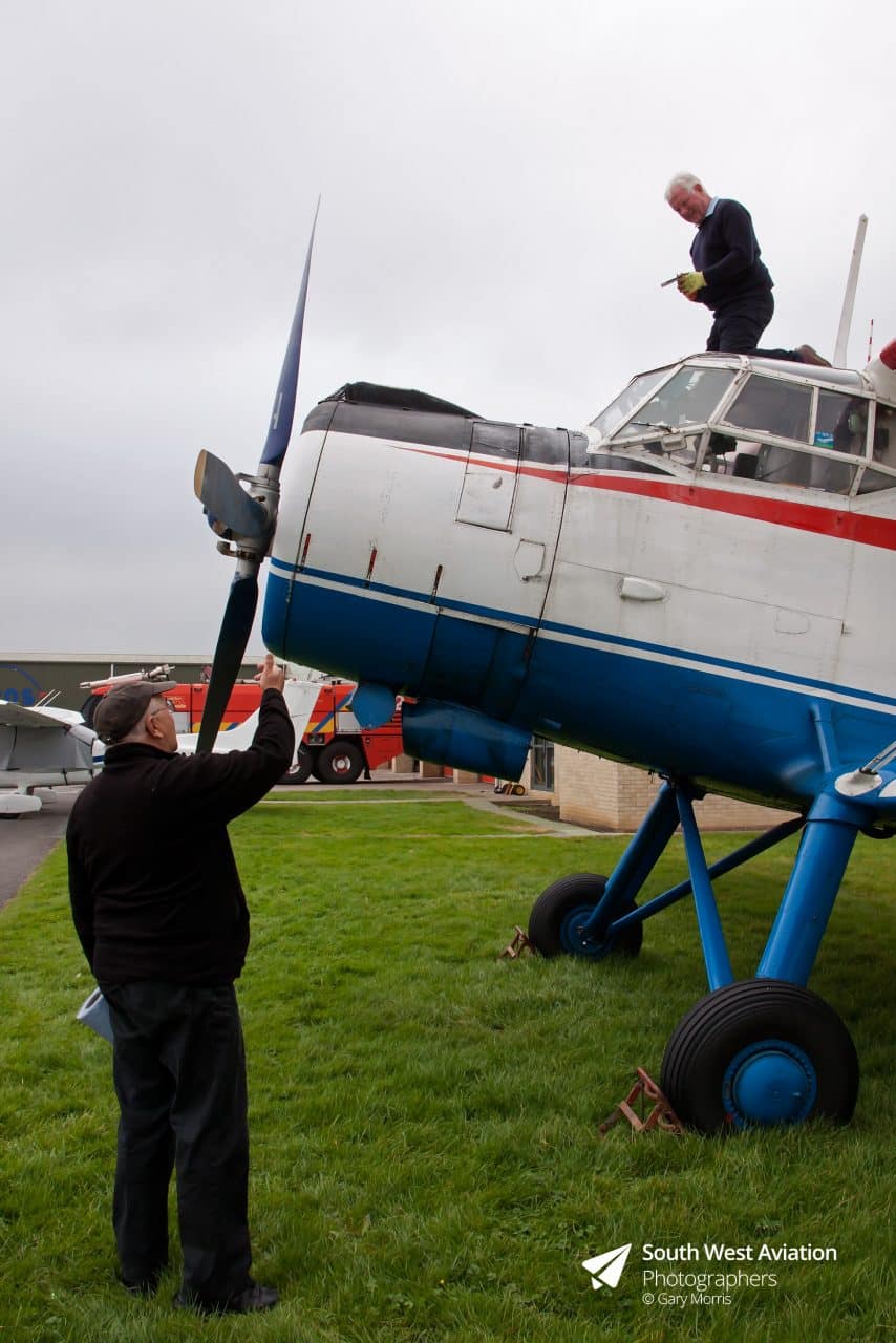 On the day of each flight, before the large WSK-PZL-Kalisz (Wytwornia Sprzetu Komunikacyjnego-PZL-Kalisz) Shvetsov ASz-62 engine can be fired up, a few pre-flight checks were needed, including a look at the engine oil level (in front of the windscreen) and a few cycles of the large propeller to ensure that any oil is circulated around the engine.