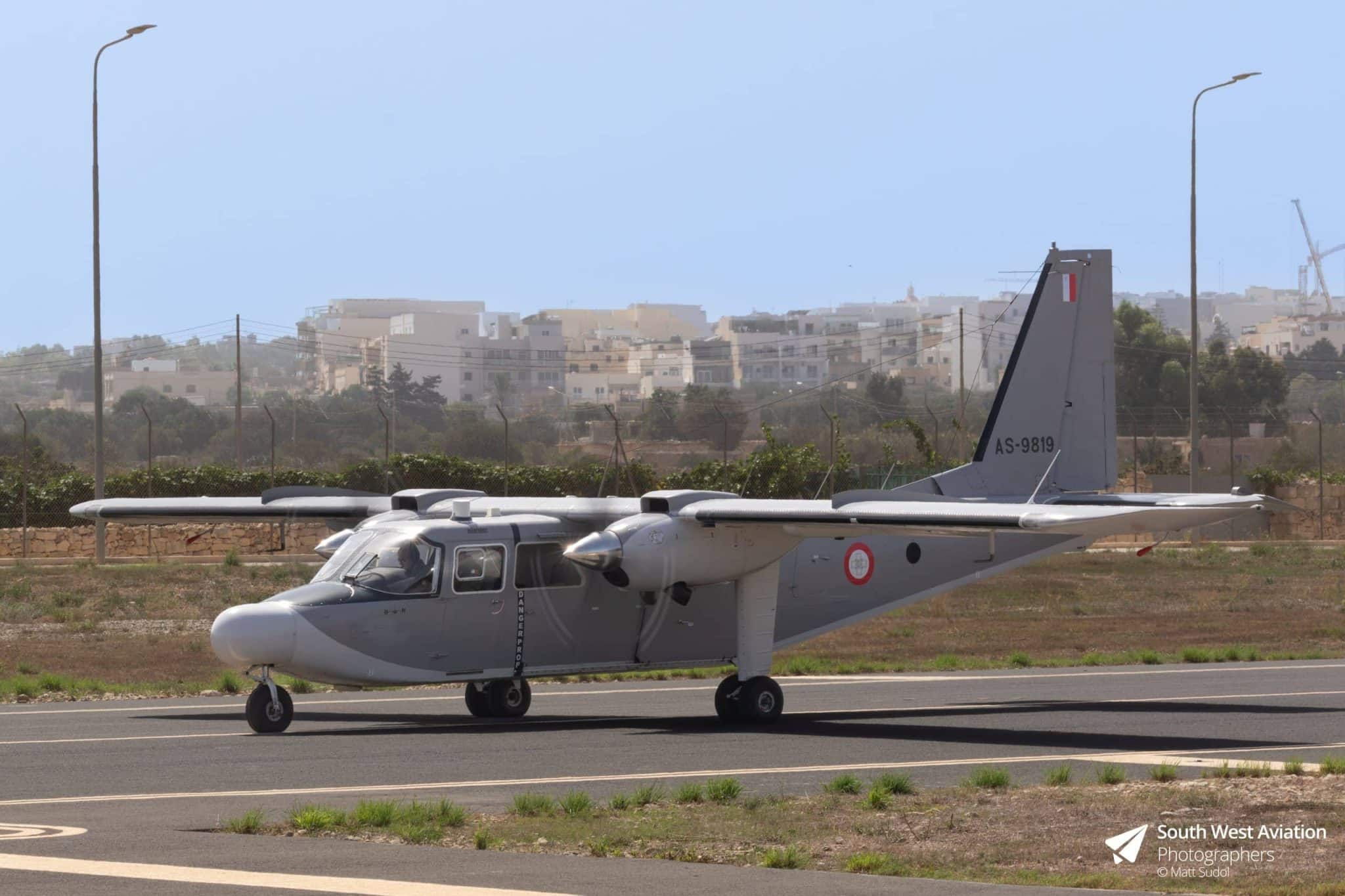 AS9819, a Britten-Norman BN-2T-26 Islander. Delivered to the Armed Forces of Malta in May 2000, this rugged twin-engine utility aircraft embodied the Islander’s reputation for reliability, versatility, and endurance. Originally built in 1982 as construction number 2156, AS9819 began its life under British civilian registration as G-BKJG and later G-LIPP, serving with organizations including the Rhine Army Parachute Association. It was eventually acquired by Pilatus Britten-Norman Ltd before being transferred to Malta, where it was re-serialled under the local military system “98” denoting the year of acquisition and “19” marking its sequence in the fleet. Powered by twin Allison 250 turboprop engines, the BN-2T variant offered improved performance over its piston predecessors, making AS9819 well-suited for maritime patrol, surveillance, and transport missions across Malta’s strategic island territory. Its high-wing design, short take-off and landing capability, and robust airframe allowed it to operate from austere airstrips and coastal outposts with ease. AS9819 was overhauled at Bembridge between June 2006 and April 2007, using test registration G-51-2156 during its refurbishment. A further overhaul was conducted in 2022 at Britten-Norman’s facility at Lee-on-Solent Airfield, Hampshire. This overhaul should see the Britten-Norman BN-2T-26 Islander operate in Armed Forces of Malta Air Wing service for a number of years to come.
